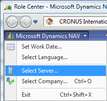 When you try to select a new service tier in the Role Tailored Client, you choose Select Server in the Microsoft Dynamics NAV menu: