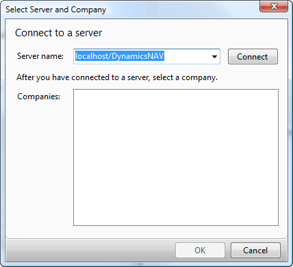 This pops up the Select Server and Company dialog: