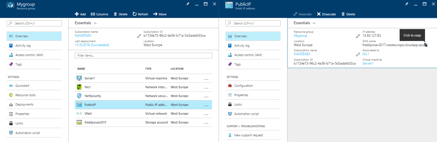 Deploying the image is done like you deploy any other Virtual Machine on Azure, in the classic management portal or in the new azure portal. Both methods ends up giving you a Virtual Machine running on Azure with your very own NAV Service Tier and all clients installed and you can immediately connect to the machine and start any of the Clients on the machine.