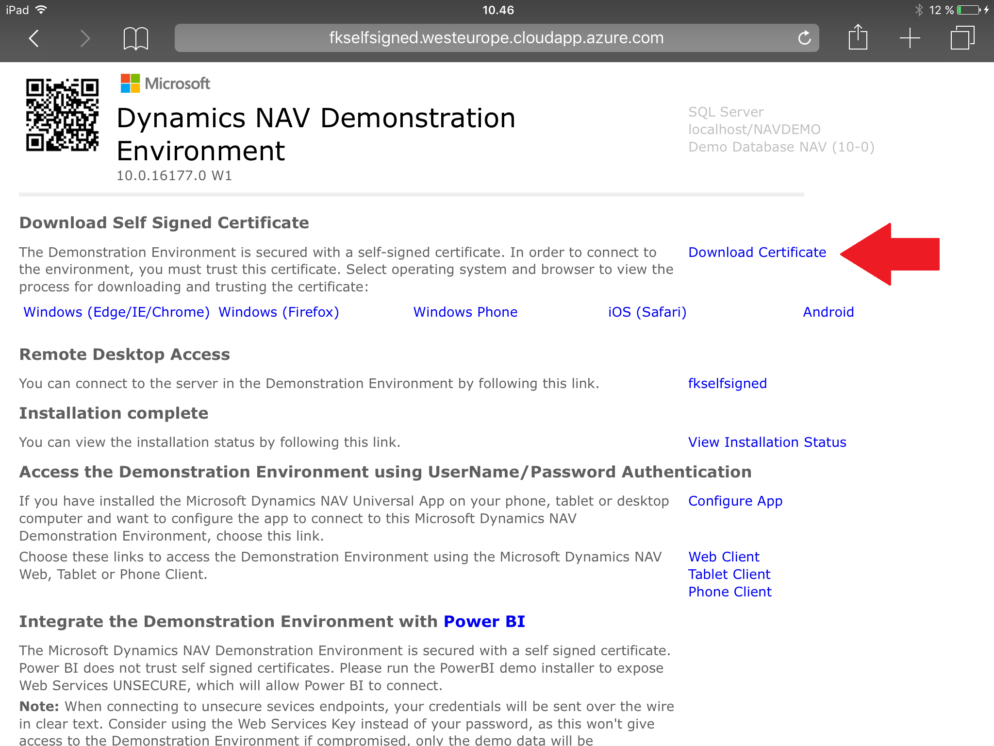 With the release of iOS 10, Apple have changed the way self-signed certificates works and since self-signed certificates are a vital part of the Microsoft Dynamics NAV Demo Environment setup, I thought I would describe how to connect to a Demo Environment, signed by a self-signed certificate from an iPad or an iPhone.