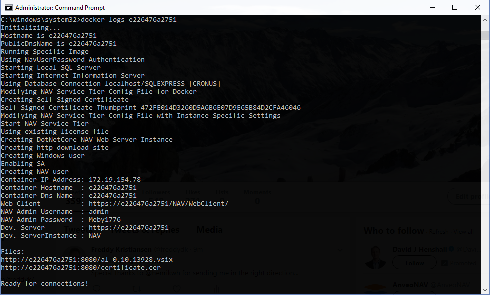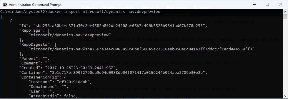 Note: every issue created on the github repository: http://www.github.com/microsoft/nav-docker should be accompanied with a docker inspect output of the container not working. If it isn’t included, it is probably the first things you will be asked for.