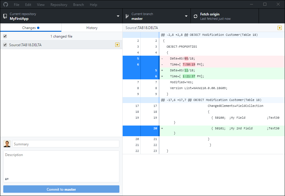 Now, switch to the GitHub Desktop app, which will show the modifications: