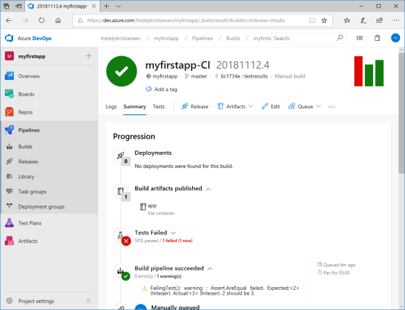 In the next Blog Post we will setup checkin policies with code reviews and pull requests – and we will create a few more pipelines for testing our app against insider builds.