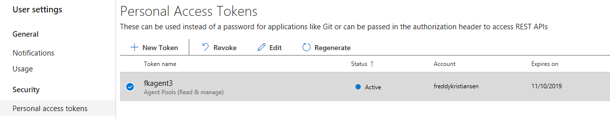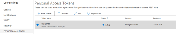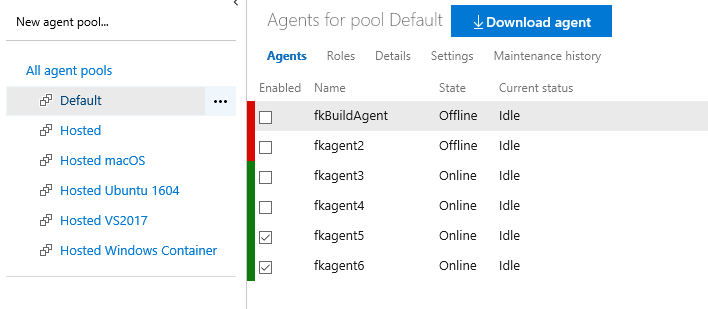 After 15-20 minutes, you should see your new agent popping up (https://dev.azure.com//_settings/agentpools), ready to serve you:
