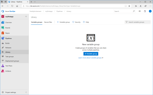 In Azure DevOps, under your Project, select Pipelines -> Library.