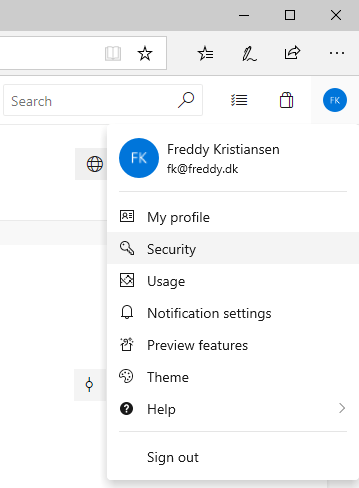 Open your Azure DevOps organization (eg. https://dev.azure.com//) and click your avatar and select Security