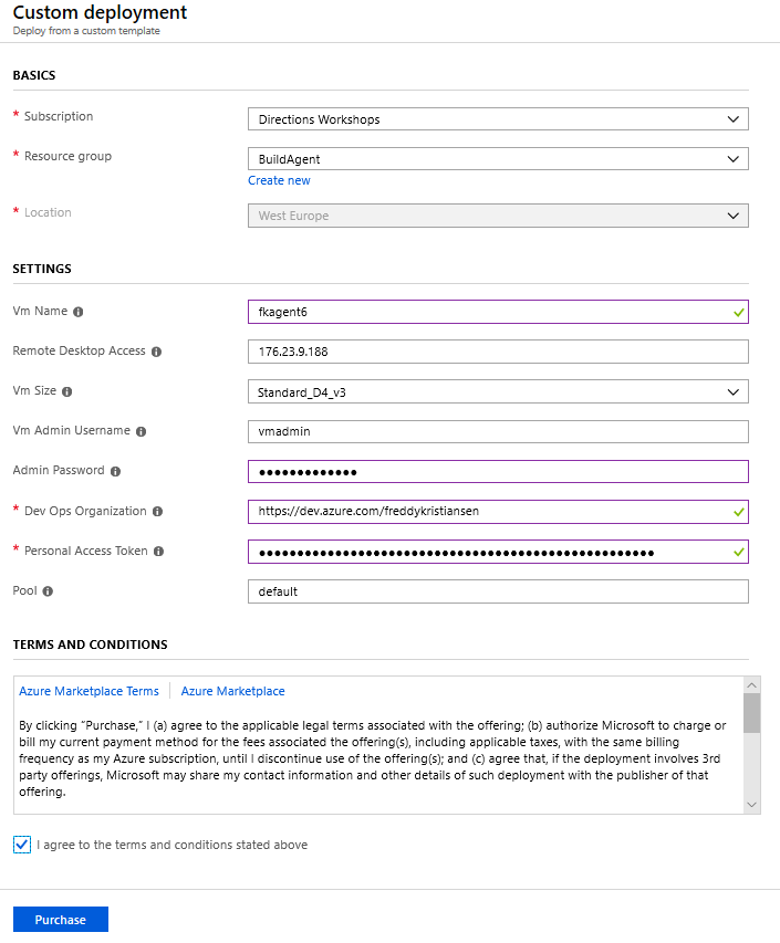For the automated build agent setup, open http://aka.ms/getbuildagent and specify size, location, your organization and the Personal Access Token.