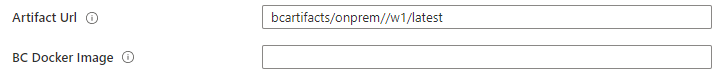 Again – if you enter a docker image, the artifactUrl is ignored. You can either enter a full artifact Url (returned by Get-BcArtifactUrl) or you can enter the parameters for the function (like above) separated by a slash like: