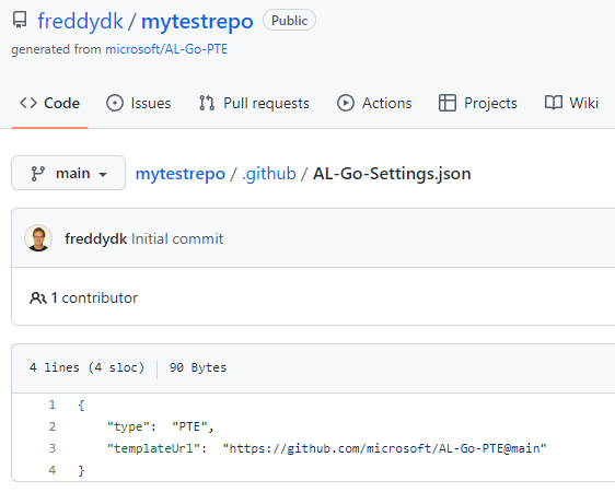 When I create a new repository based on https://github.com/microsoft/AL-Go-PTE, I will get a repository with some workflows and some settings files.